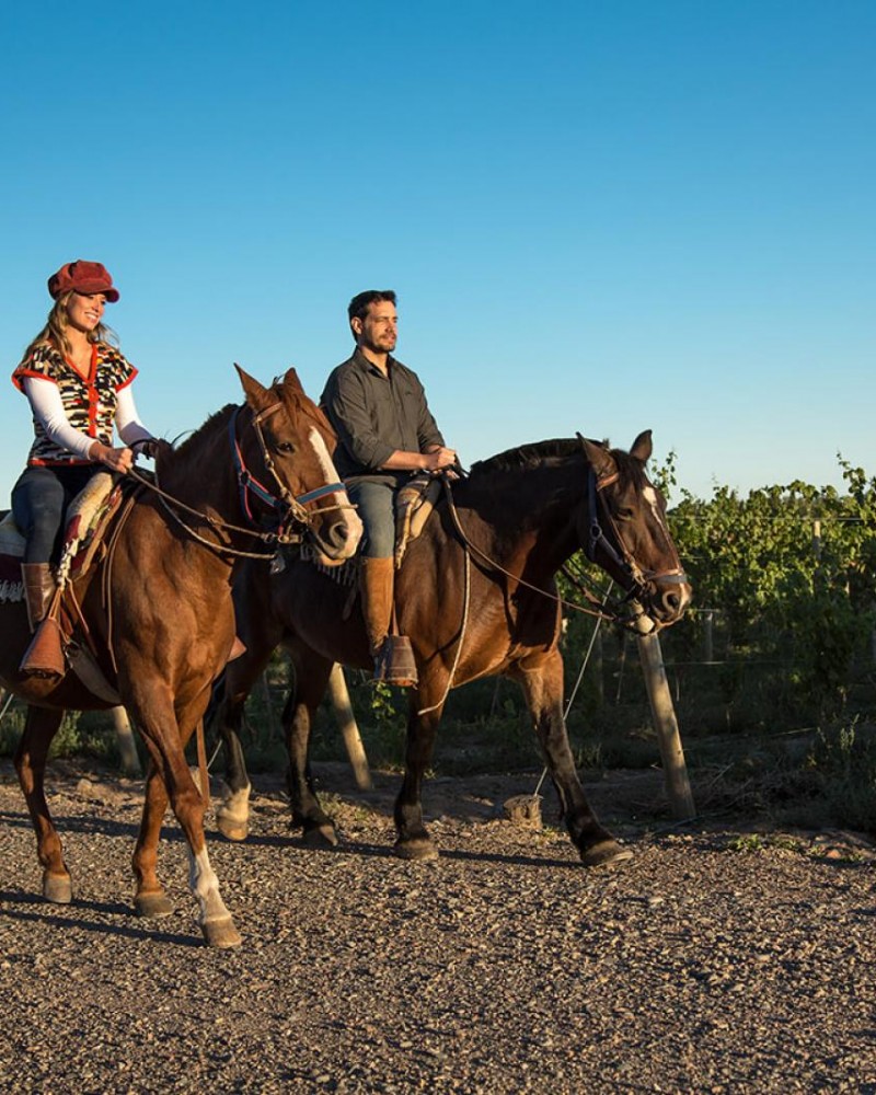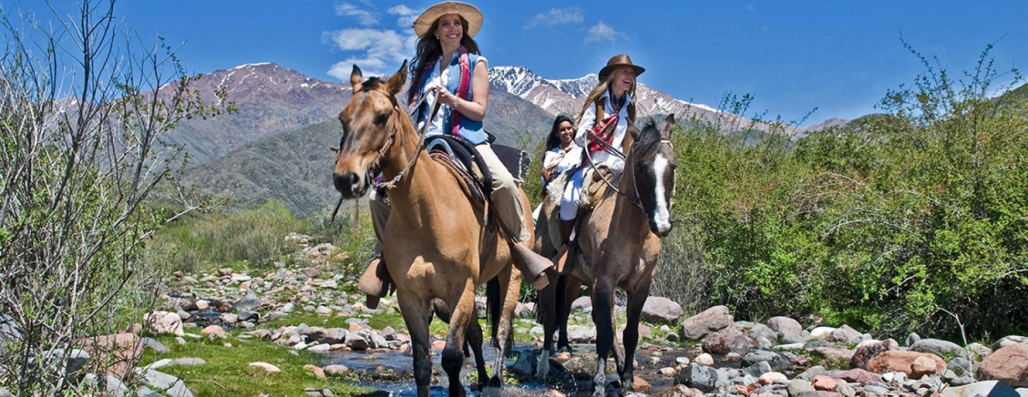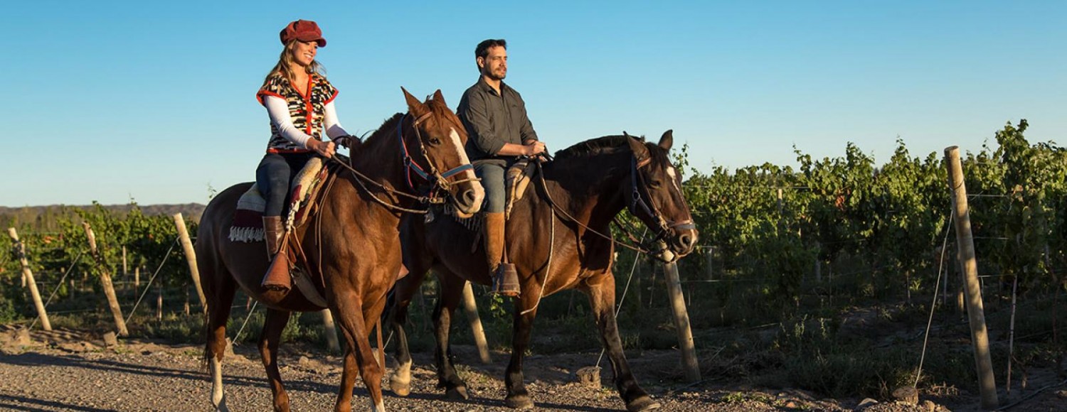 Cenários deslumbrantes proporcionam aos visitantes inúmeras oportunidades de apreciar as paisagens de uma forma diferente. Desfrute de um passeio tranquilo a cavalo, entre vinhedos, junto com um experiente vaqueiro local (gaúcho). Venha experimentar de uma cavalgada pela bela e romântica paisagem campestre de Mendoza.