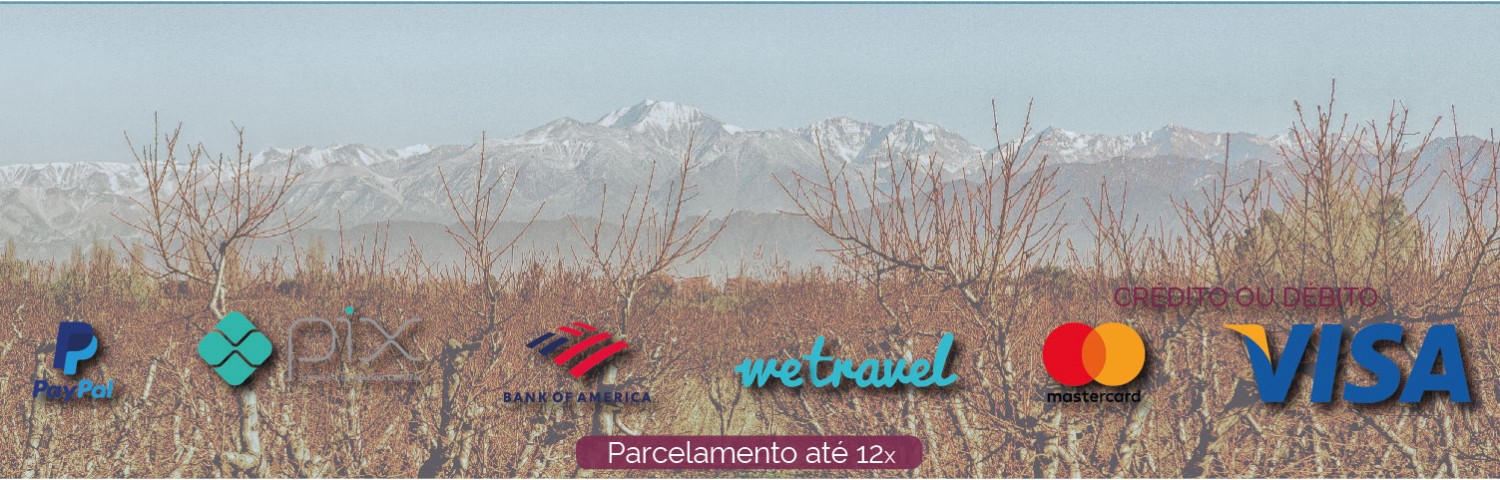 Pagamento de 50% do total no ato das confirmações das suas reservas e o 50% final, trinta dias antes da data do primeiro serviço aqui em Mendoza! – Ler Termos e Condições abaixo!